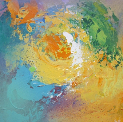 Each moment we live we experience life through our varied senses, I hear the numerous sounds; noting the treble, the bass, the forte, the piano and the silence. I feel the rhythm, the pulse, the vibrations and the stillness. When I look at the countryside, an object, a figure, I see a harmony of colours, the shapes, the tones, the shadows. I absorb all these moments, culminating in a painting in an abstract form.