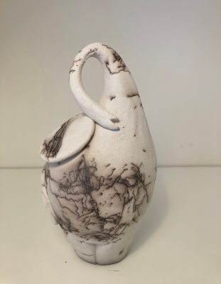 Alison works in raku, creating her wonderfully tactile pieces. She lives in North Wales. It was an interest in ceramics that drew Alison to study in the Potteries where she met Phil Hayes, the potter, amd it has been pottery that has been their love snd work ever since. Alison and Phil have been potters specialising in raku fired sculptures for over 25 years.